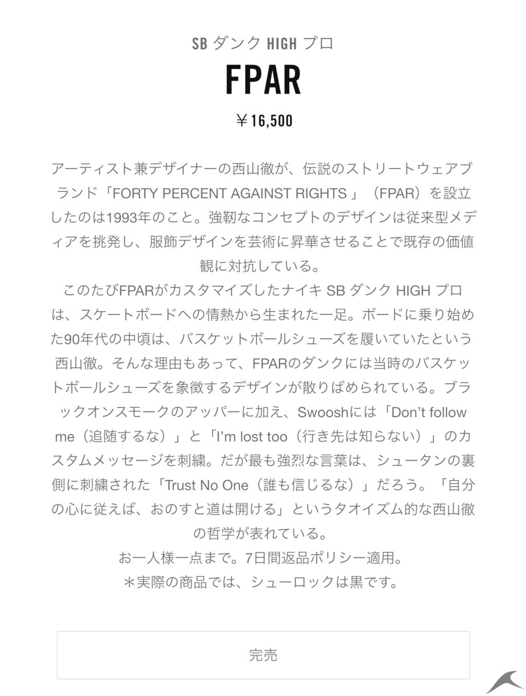 FORTY PERCENTS AGAINST RIGHTS(FPAR) × ナイキ SB ダンク ハイ
